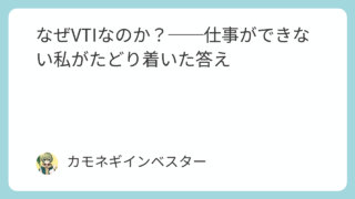 投資副業 なぜVTIなのか?──仕事ができない私がたどり着いた答え 仕事の限界を感じた私が、希望と安心を手にするためにVTIに投資した理由とは?たぱぞうさんの影響と、人生を変える資産運用の決断を綴ります。 2025.08.05 投資副業